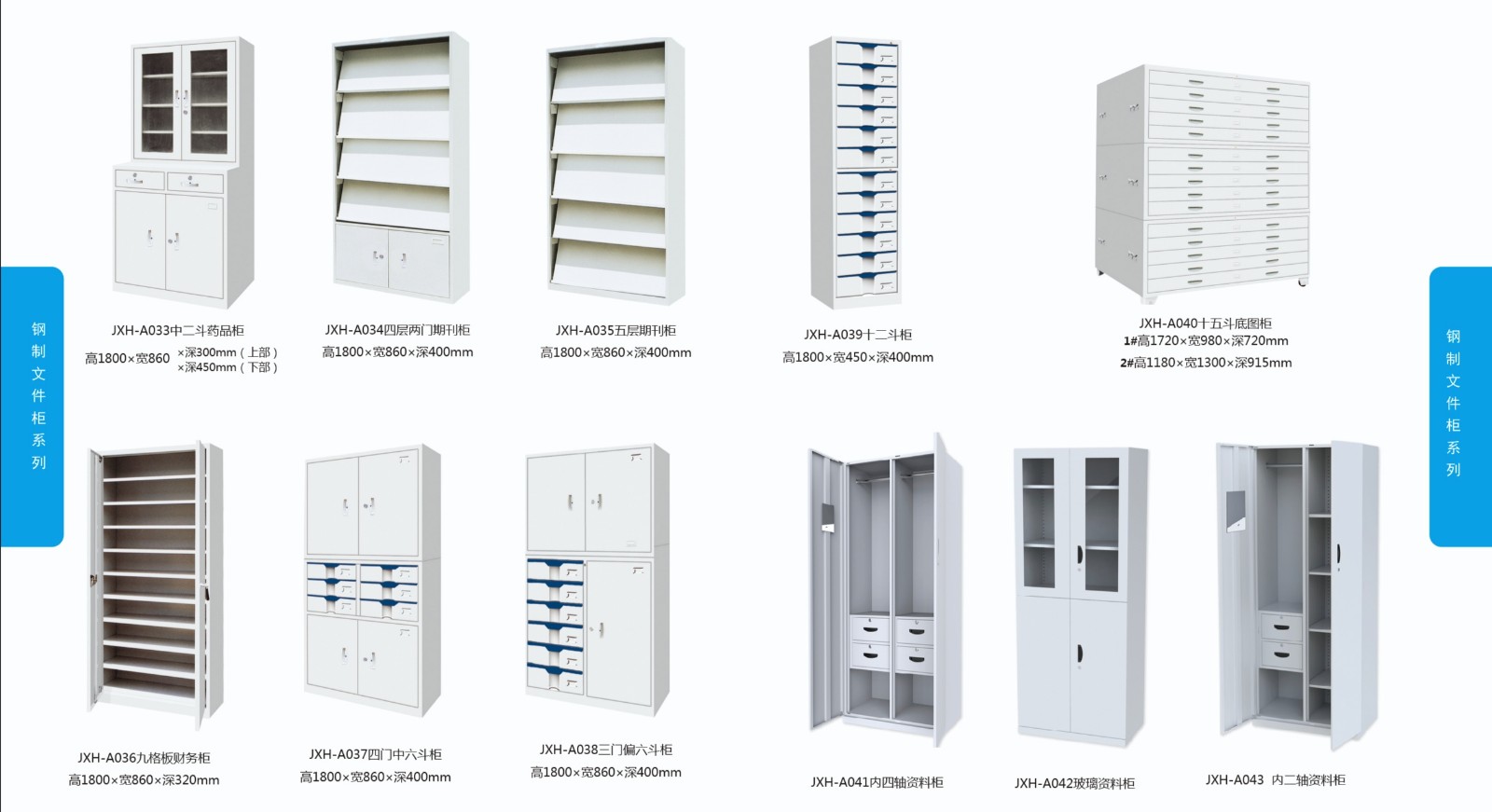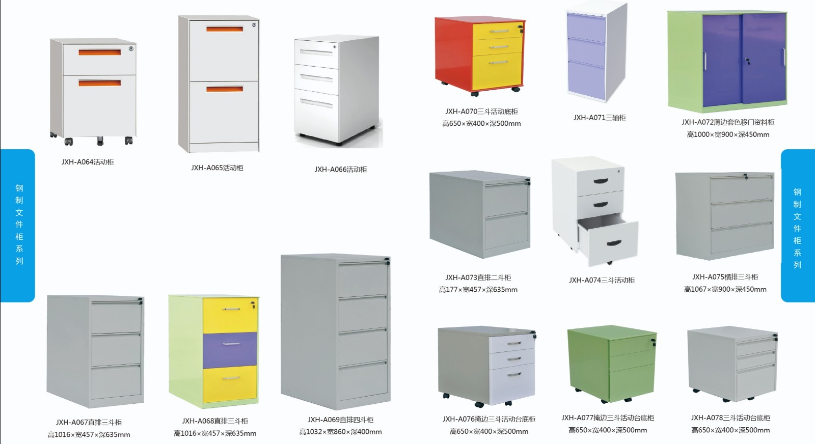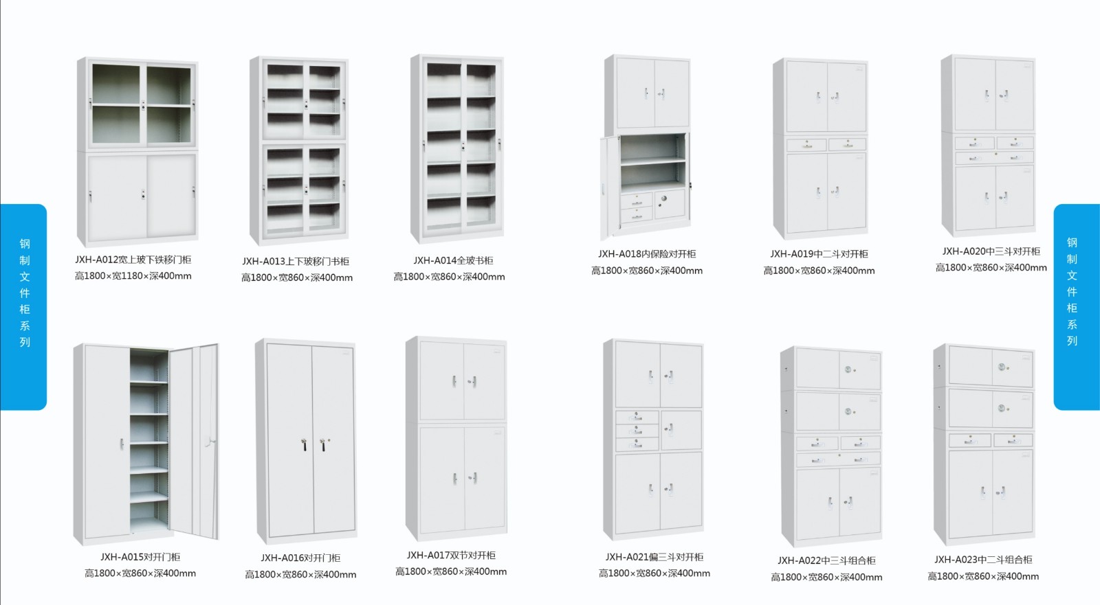 常规文件柜细分:二斗卡箱挂劳柜,两抽资料柜,三抽资料柜,四抽资料柜,三抽床头柜,三抽活动柜,六小斗横向文件柜,三斗卡箱挂劳柜,四斗卡箱挂劳柜,五节存根柜,玻璃移门地柜,铁移门地柜,玻璃移门地柜,铁移门地柜,玻璃移门十二抽文件柜,单门八抽柜,二层有斗文件柜,二抽半玻璃文件柜,卷门柜,六抽半玻文件柜,偏三斗半玻璃文件柜,全玻璃文件柜,三层柜,三斗开门资料柜,三门六抽文件柜,上玻下铁掩门文件柜,上玻下铁移门文件柜,书架柜,双门电子密码锁文件柜,双掩门(无斗)豪华锁,四层柜,四门中斗文件柜,铁掩门十二抽文件柜,图纸柜(四抽),五层档案柜,五层柜,五门六斗组合柜,下二抽半玻书柜,一门六抽地柜,一门四斗半玻璃文件柜,硬四门(连体)豪华锁,硬四门文件柜,右三斗移门半玻璃文件柜,中六抽玻璃书柜,有喷塑亚光玻璃移门低柜、喷塑亚光开门玻璃柜 、喷塑亚光双门双节文件柜、喷塑亚光二斗移门组合柜、铁皮柜等等.