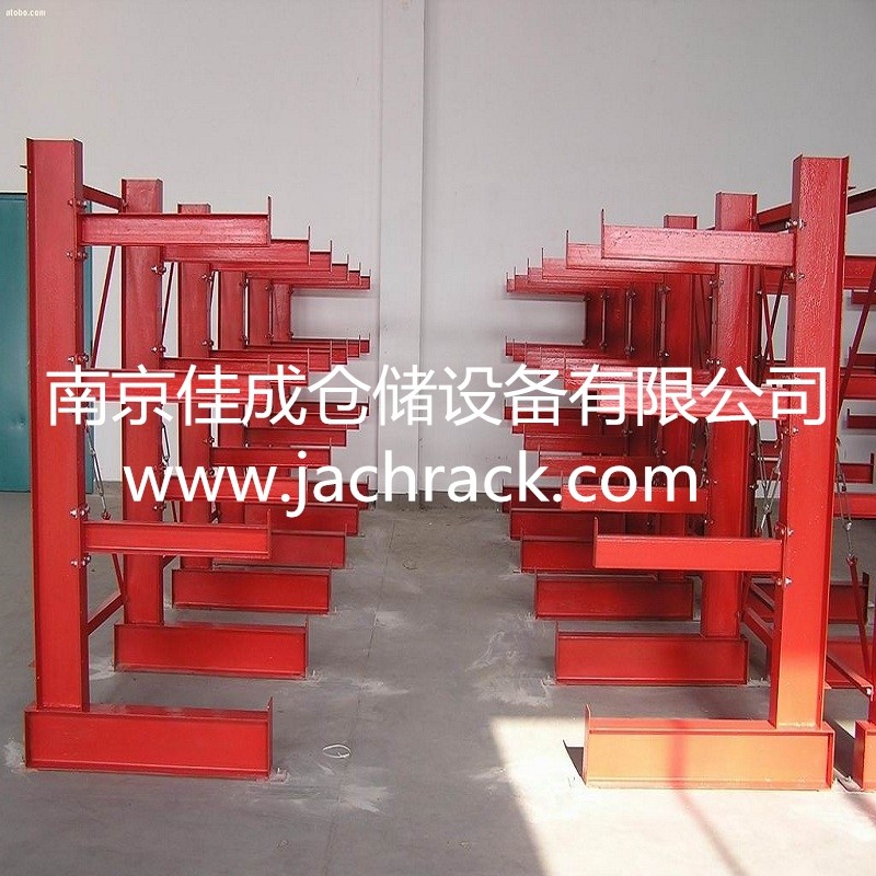 悬臂式货架是货架中重要的一种。悬臂式货架适用于存放长物料、环型物料、板材、管材及不规则货物。悬臂可以是单面或双面,悬臂式货架具有结构稳定,载重能力好、空间利用率高等特点。悬臂式货架立柱多采用H型钢或冷轧型钢,悬臂采用方管、冷轧型钢或H型钢,悬臂与立柱间采用插接式或螺栓连接式,底座与立柱间采用螺栓连接式,底座采用冷轧型钢或H型钢。